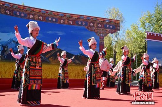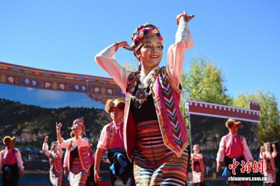图为“当惹雍错”景区推介会上的文艺演出。 贡嘎来松 摄