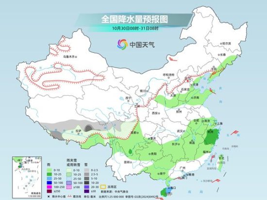 未来三天(10月28日至30日),青藏高原部分地区雨雪频繁,局地有暴雪或大暴雪,需注意做好相关防御措施。此外,明天,我国中东部地区降水将增多,公众雨雪天出行请留意交通安全。气温方面,今明天,我国大部气温回升,但昼夜温差拉大,公众请适时调整着装,谨防感冒。