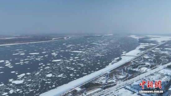 “华夏东极”抚远市气温持续下降 中俄界江黑龙江抚远段进入冬季流冰期