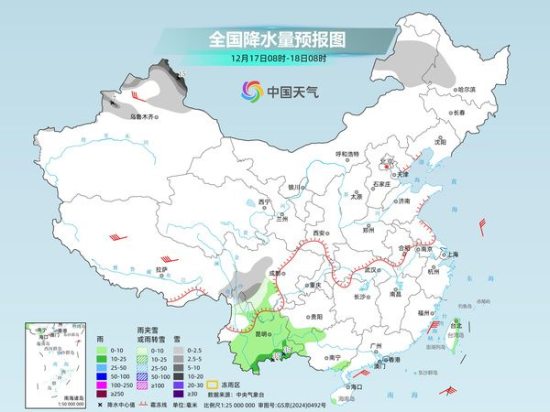 16日之后受南支槽东移影响,西南、华南阴雨天气会有所增多。其中,西南地区南部、广西西北部和东南部等地部分地区有小到中雨,云南东南部局地有大雨。同时,内蒙古东北部、黑龙江西南部、新疆北疆北部、川西高原中南部、云南西北部等地部分地区有小到中雪或雨夹雪。
