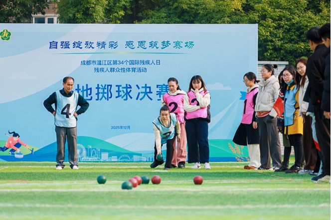 12月1日下午,成都市温江区特殊教育学校内彩旗飘扬、暖意融融,由成都市温江区残疾人联合会主办、成都市温江区教育局、共青团成都市温江区委员会、成都市温江区涌泉街道办事处、成都市温江区特殊教育学校协办的第34个国际残疾人日残疾人群众性体育活动决赛顺利举行。来自全区各镇(街道)的230余名参赛人员、裁判员、志愿者及工作人员齐聚赛场,在竞技与趣味兼具的赛事中展现残疾人昂扬向上的精神风貌,传递自强不息的生命力量。