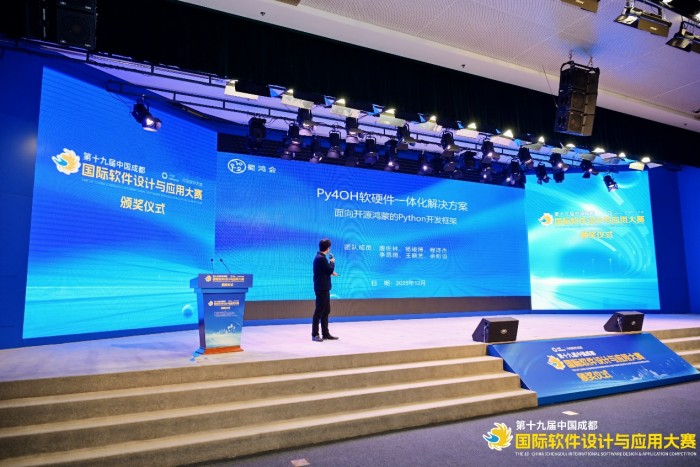 颁奖仪式现场亮点纷呈,多项重磅成果集中发布与签约,彰显“以赛促产、以赛促创”的赛事价值。成都市经济和信息化局相关负责人发布了《2025年成都智造团体标准建设与应用推广蓝皮书》,共收录9项涵盖材料、装备、工业电商等领域的团体标准,为制造业数字化转型提供规范指引;蜀鸿会发布开源软件新产品“Py4OH软硬件一体化解决方案”,通过自研的语言引擎和开发框架将Python引入开源鸿蒙操作系统,让千万Python开发者轻松入局开源鸿蒙,让国产操作系统上的软件生态更具活力,其配套的国产化低代码平台直接将开源鸿蒙引入中小学信息科技课堂,实现了国产化技术的普及应用,展现成都本土企业在开源生态建设中的突破。
